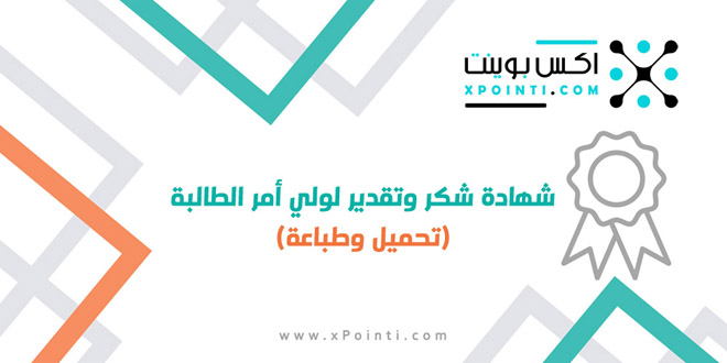 شهادة شكر وتقدير لولي أمر الطالبة (تحميل وطباعة) ..