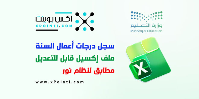 سجل درجات أعمال السنة ملف إكسيل قابل للتعديل مطابق لنظام نور ..